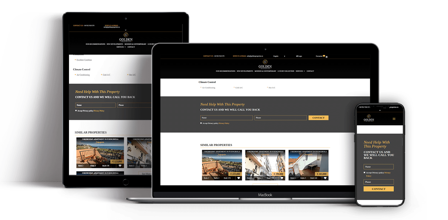 En SEB Creativos somos especialistas en el diseño y puesta en marcha de sitios web específicamente pensados para el mercado inmobiliario. Nuestros diseños, permiten a nuestros clientes enlazarse directamente con portales como Inmobalia, Kyero, Rightmove o Resales Online, etc.Nuestros beneficiarios podrán disponer de extensos espacios de almacenamiento que soporten millares de propiedades en bases independientes que permitan el desarrollo de su funcionamiento incluso cuando los sistemas externos dejan de funcionar. Todo para encajar a nuestros beneficiarios dentro del marco de la excelencia.