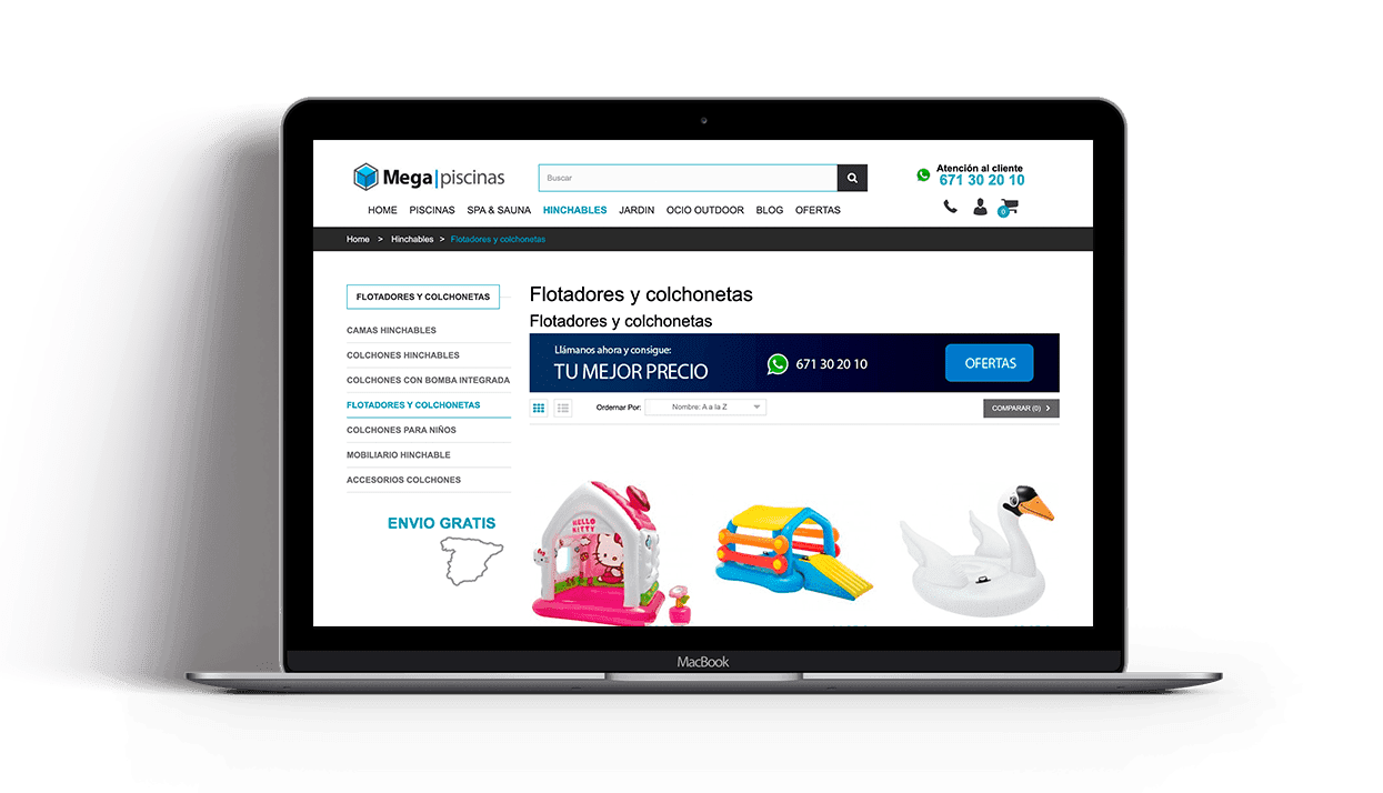 MegaPiscinas es un e-commerce o tienda online sobre productos del verano y el ocio en jardines y al aire libre. Queremos ofrecerle un servicio exquisito y personalizado como se merece. Si tiene toda la información es más facil tomar una buena decisión. Nuestros manuales simplificados y los vídeos tutoriales le ayudarán con el montaje y el mantenimiento de su nueva adquisición.Nosotros trabajamos con los mejores fabricantes del sector para que usted tenga un producto de máxima calidad al mejor precio. No nos interesa el más barato, nos interesa el mejor y en eso ponemos nuestro esfuerzo.Nuestra actividad esta enfocada a las piscinas desmontables o piscinas elevadas y todo lo necesario para su mantenimiento como los robots limpia fondos, productos de tratamiento del agua, cascadas de agua, filtros de arena y filtros de cartucho, bombas y mucho más. Tenemos excelentes SPAs americanos, SPAs hinchabes, saunas Holandesas y una amplia gama de embarcaciones hinchables, de juego y de paseo o pesca.